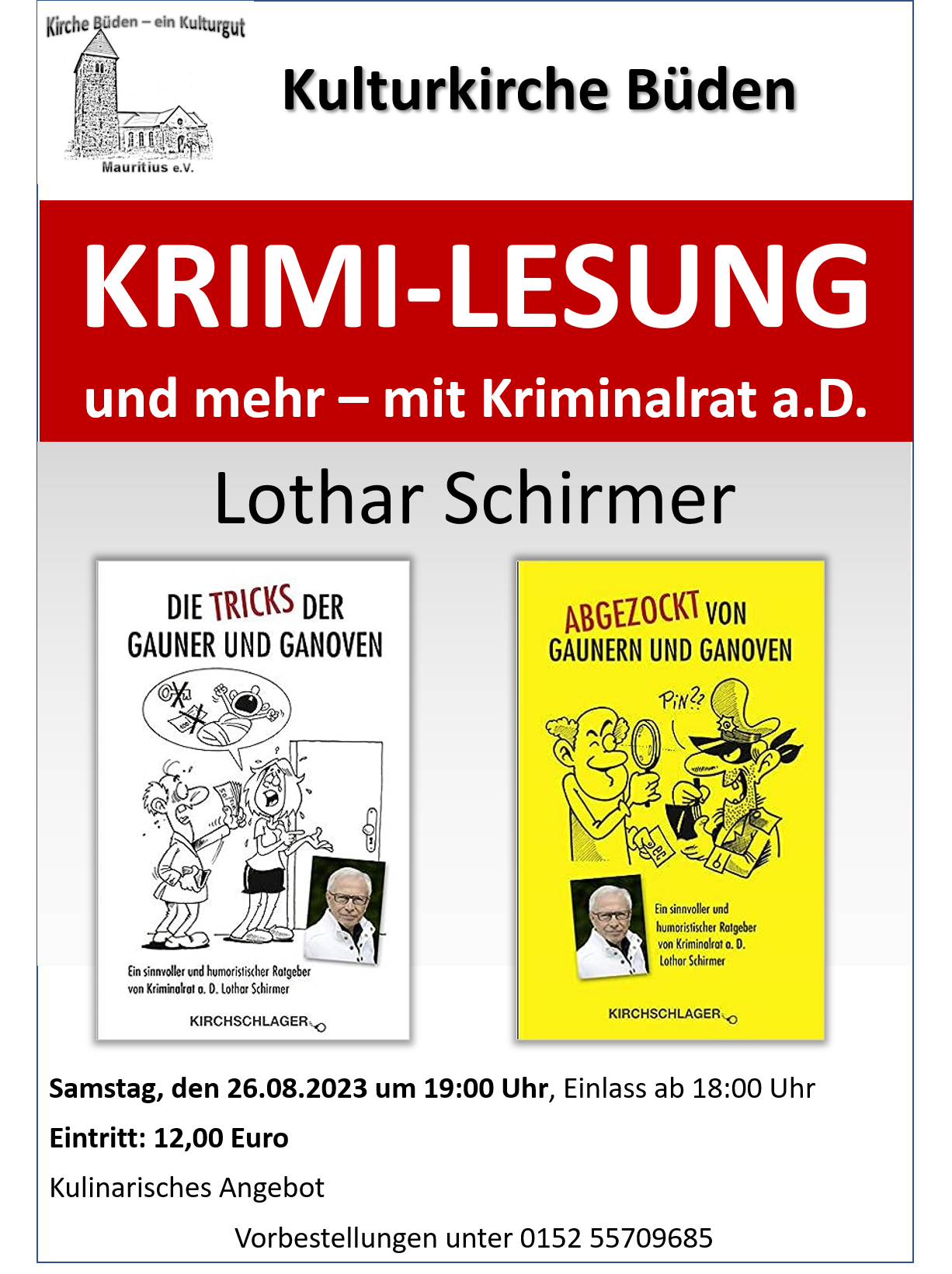heißt das Buch von Lothar Schirmer. Der Kriminalrat a.D., bekannt durch zahlreiche Beiträge im Fernsehen, eigene Serien im MDR-Radio und viele Veröffentlichungen in den Printmedien, plaudert aus seiner Praxis als Kriminalist. In seinem humoristischen Ratgeber hat er 199 authentische Kriminalfälle, kurzweilig, interessant und mit einem „Augenzwinkern“ erzählt. Geschichten zum Staunen, Kopfschütteln und Schmunzeln. Da tauchen falsche Polizisten genau so auf wie wortreiche Trickbetrüger, Schnäppchenjäger, geschickte Trickdiebe, Möchtegernjuweliere und wundersame „Geldvermehrer“.