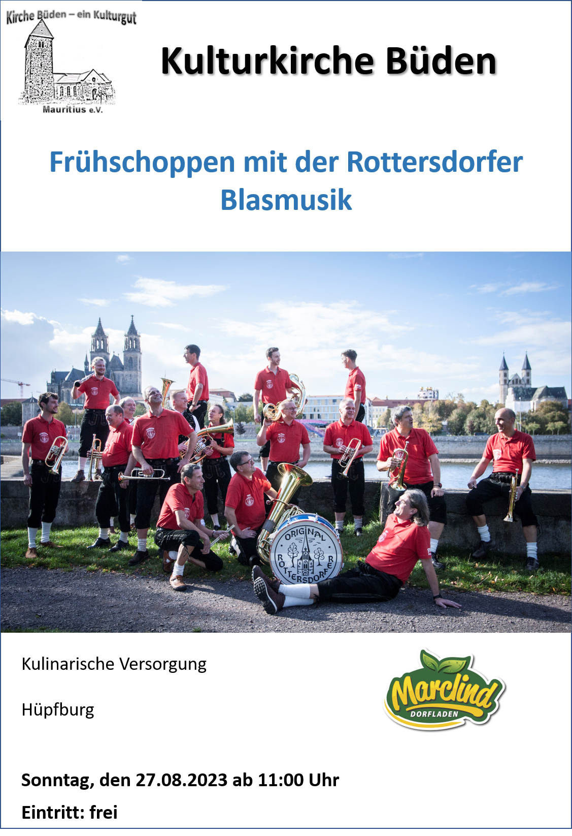 Den Abschluss des Kultursommers wollen wir am 27.08.2023 mit einem Frühschoppen und Blasmusik gestalten.